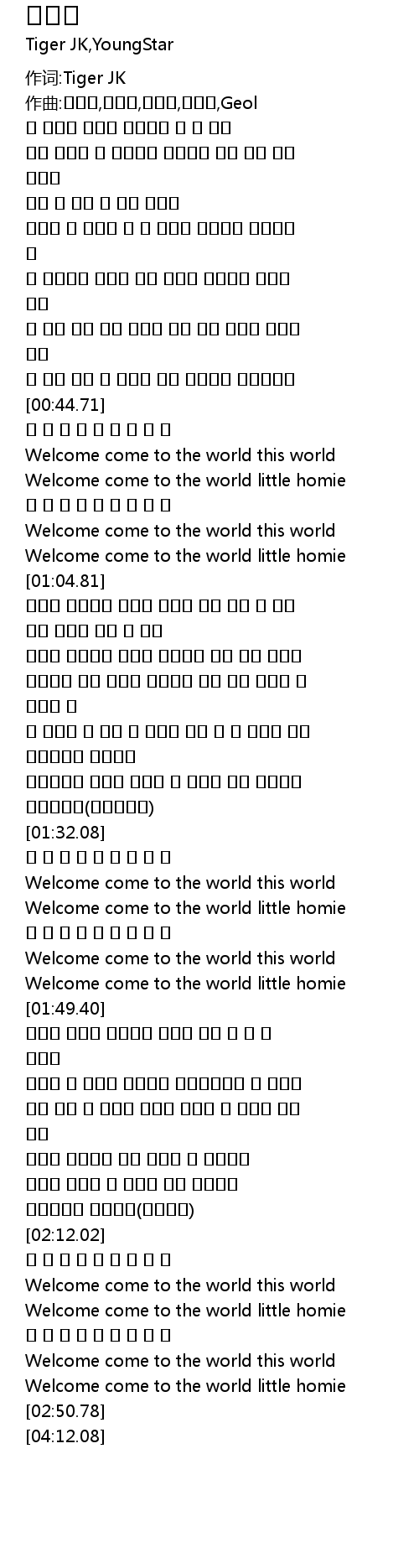 | [00:55.78] | Welcome come to the world little homie |