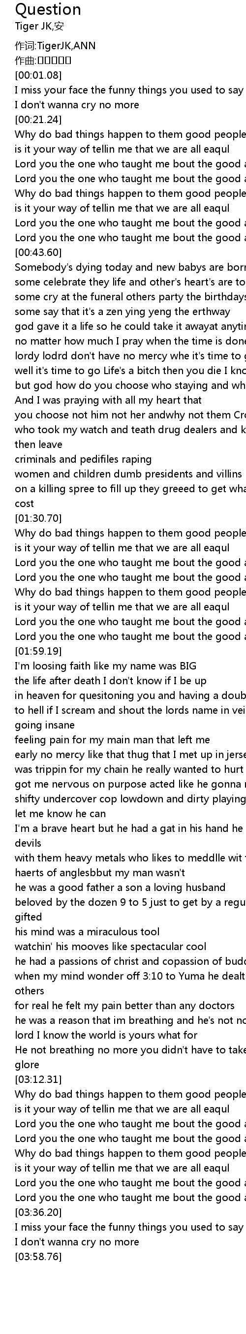 | [00:38.60] | Lord you the one who taught me bout the good and evil |