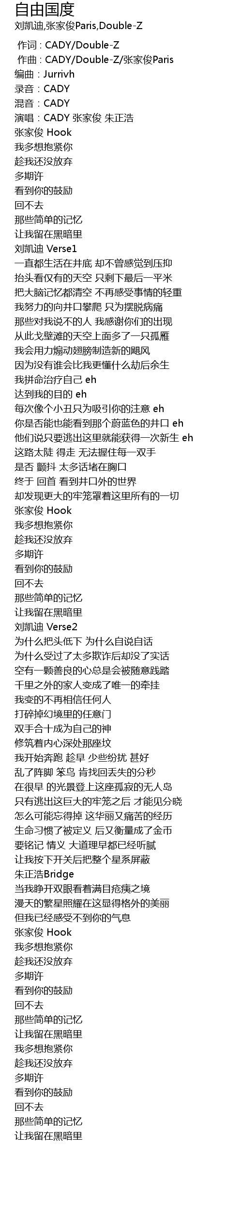 | [00:00.707] | zuo qu : CADY DoubleZ zhang jia jun Paris |