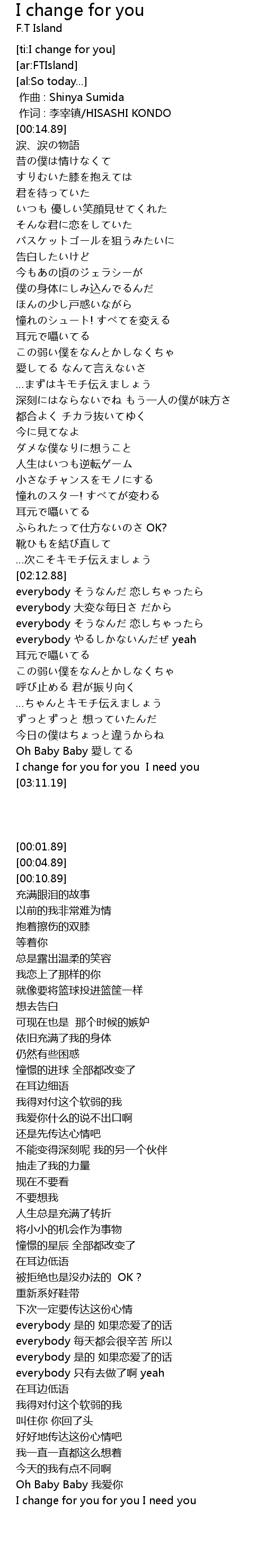 | [03:07.00] | I change for you for you I need you |