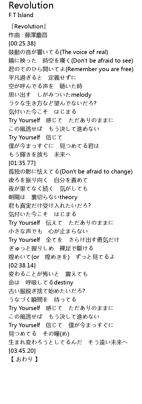 | [03:18.41] | Try Yourself 感じて ただありのままに |