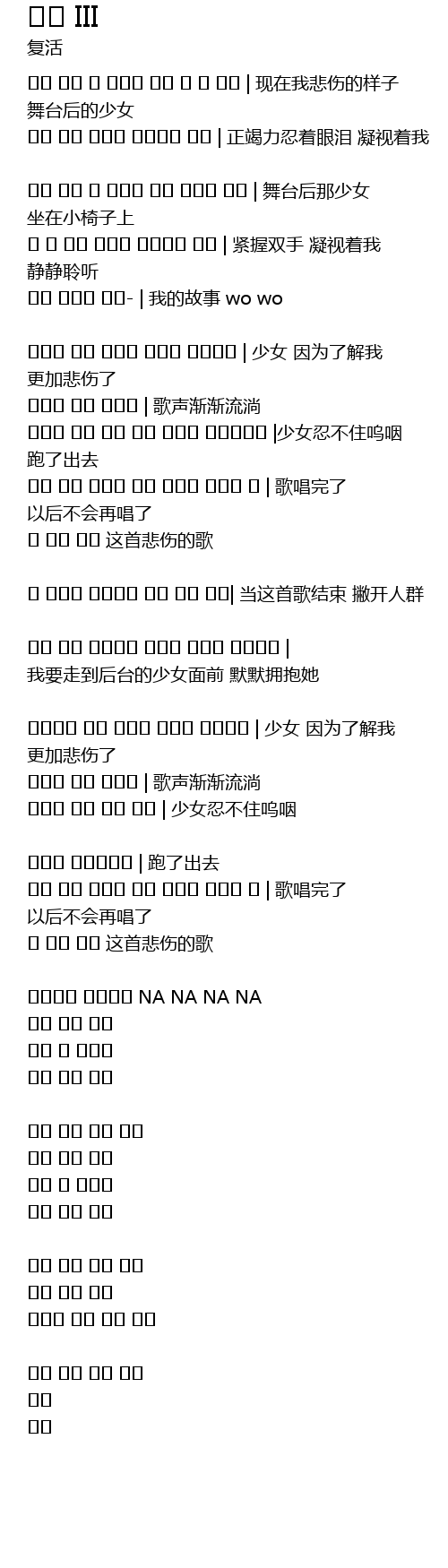 | 뒤로 한체 소녀에게 다가가 말없이 않아주리 | 我要走到后台的少女面前 默默拥抱她 | |
