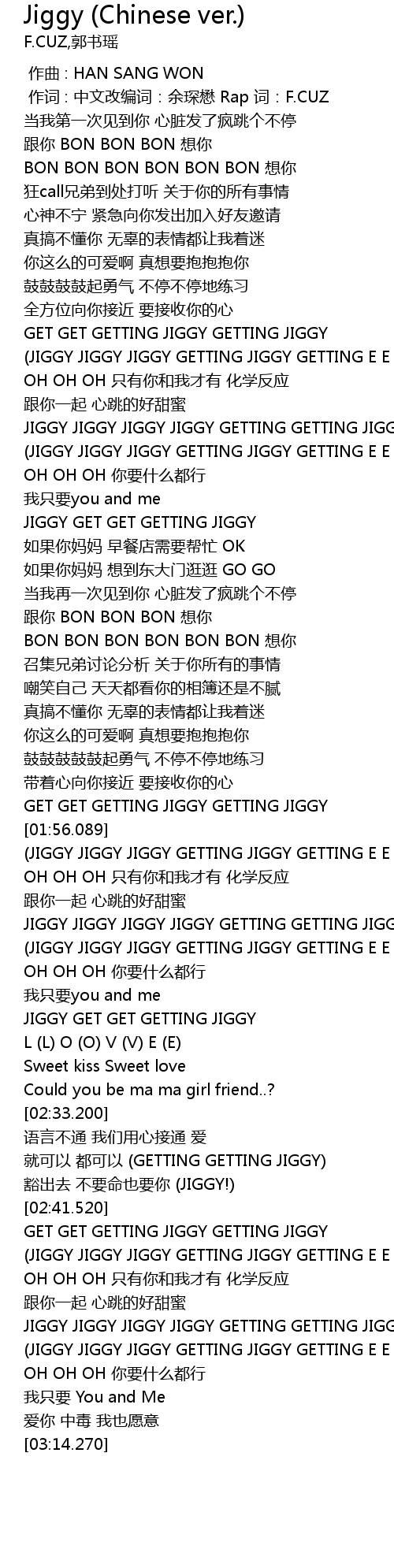 | [02:34.680] | jiu ke yi dou ke yi GETTING GETTING JIGGY |