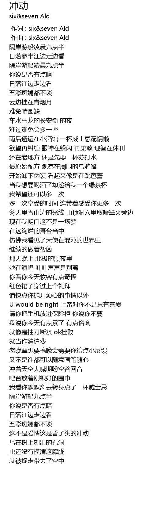 | [00:01.000] | zuò qǔ : six seven Ald |