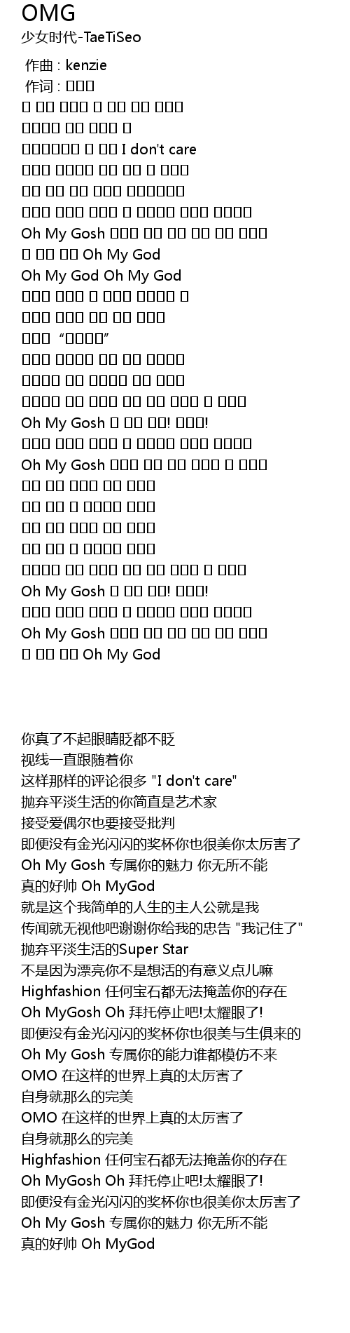 | [01:59.400] | Oh My Gosh 너만이 가진 능력 누구도 못 따라와 |