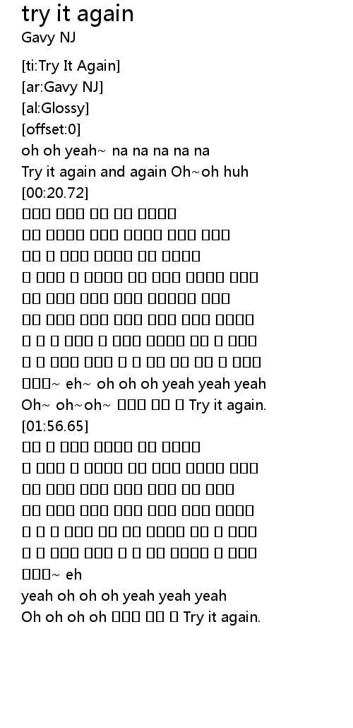 | [03:12.98] | Oh oh oh oh 그래도 다시 또 Try it again. |