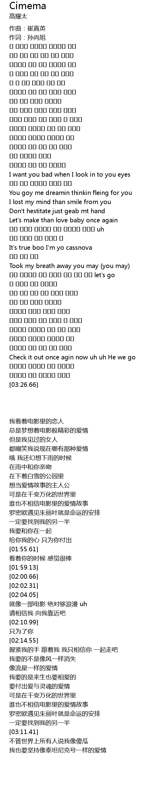 | [00:00.49] | 作曲:崔真英 |