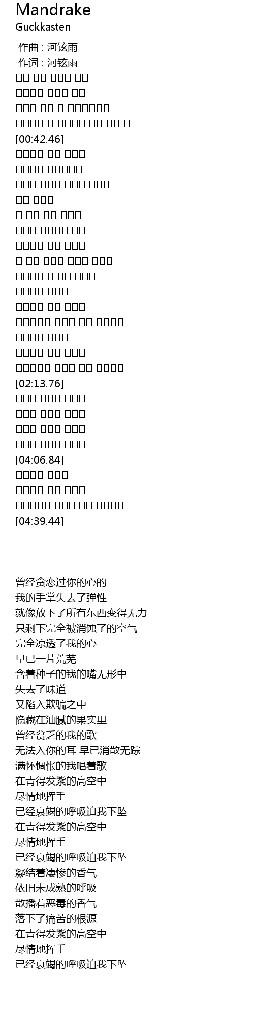 作词 : 河铉雨 |