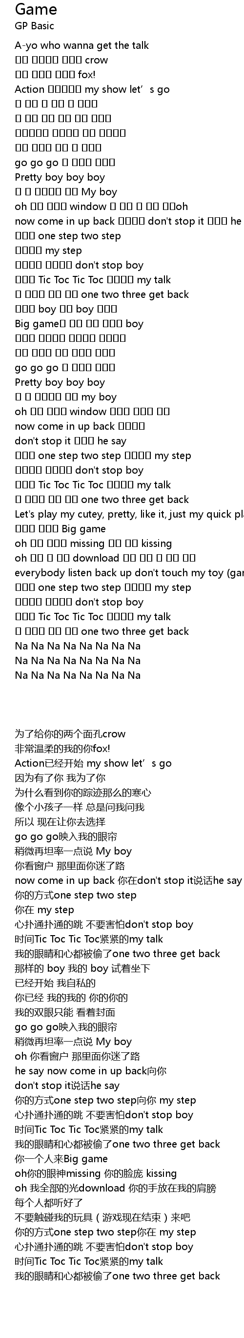 | [02:38.870] | 두근두근 떨지말고 don't stop boy |