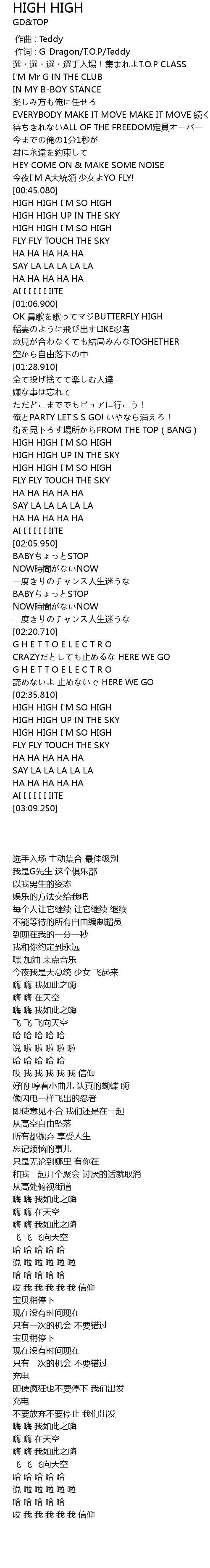 | [00:01.00] | 作词 : G-Dragon/T.O.P/Teddy |