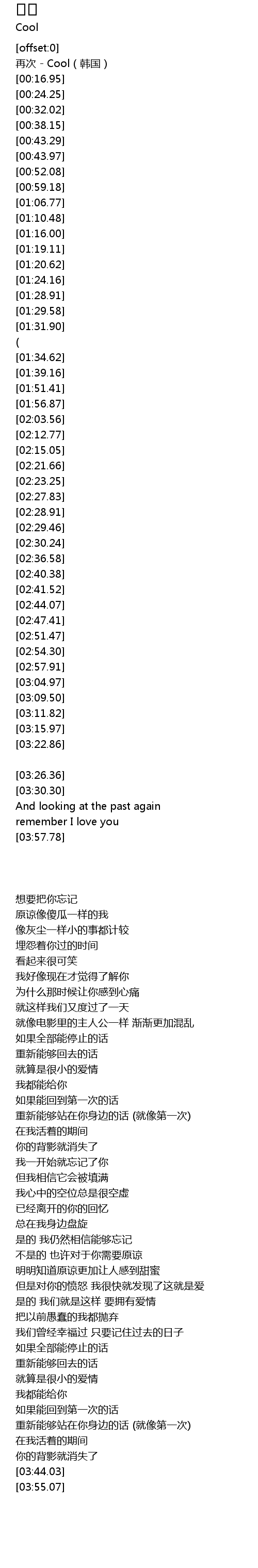 [00:01.12] 再次 - Cool(韩国)