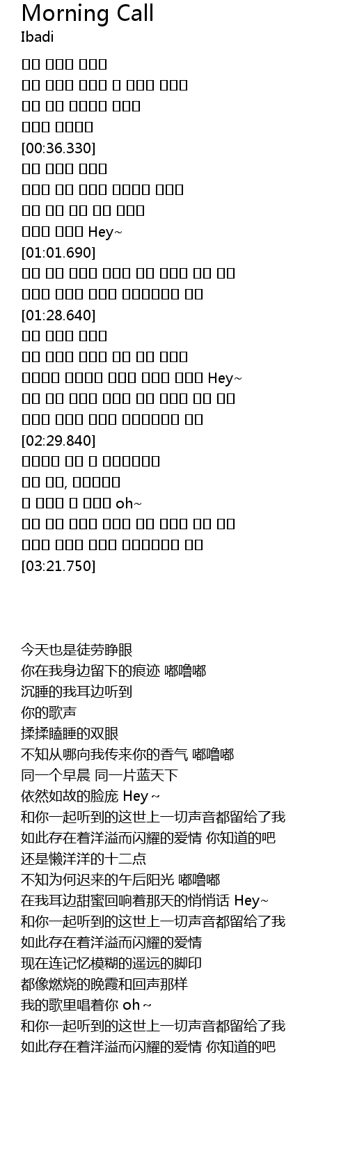 | [00:58.310] | 여전한 얼굴로 Hey~ |