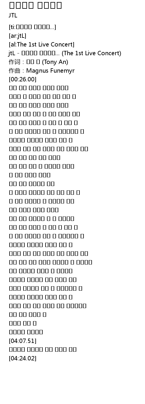 | [00:17.00] | jtL - 행복했던 기억들은... (The 1st Live Concert) |