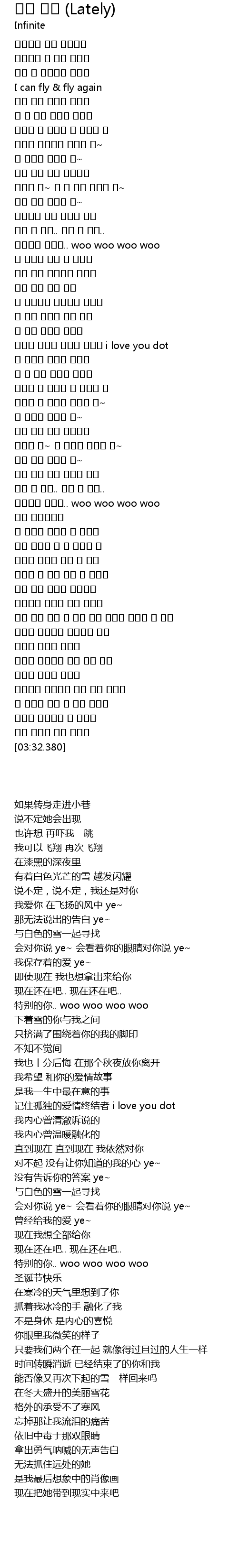 | [02:47.510] | 특별하던 너인걸.. woo woo woo woo |