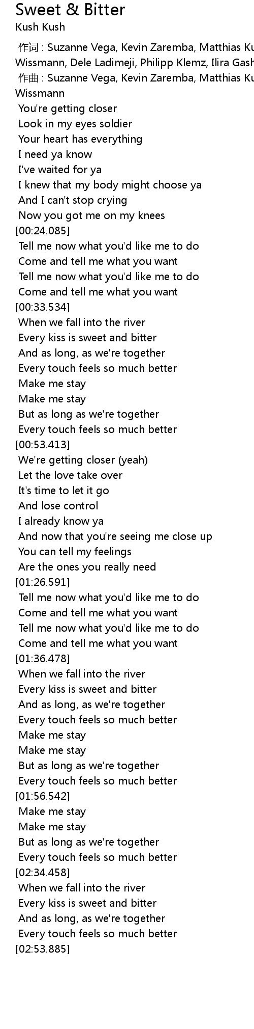 | [00:01.000] | 作曲 : Suzanne Vega, Kevin Zaremba, Matthias Kurpiers, Konrad Wissmann |