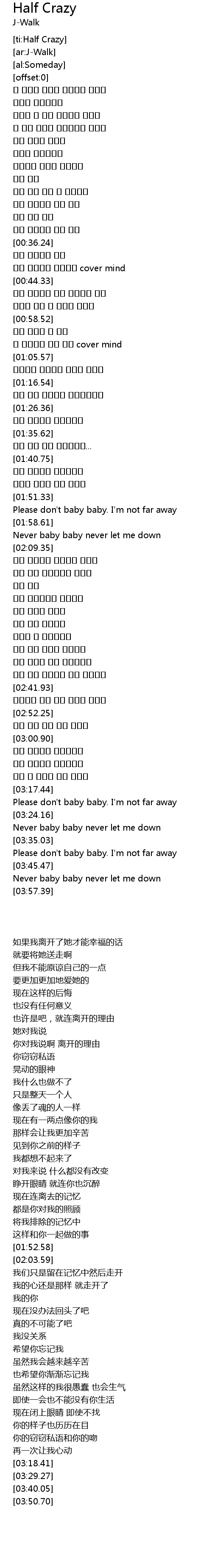 | [03:18.41] | Please don't baby baby. I'm not far away |