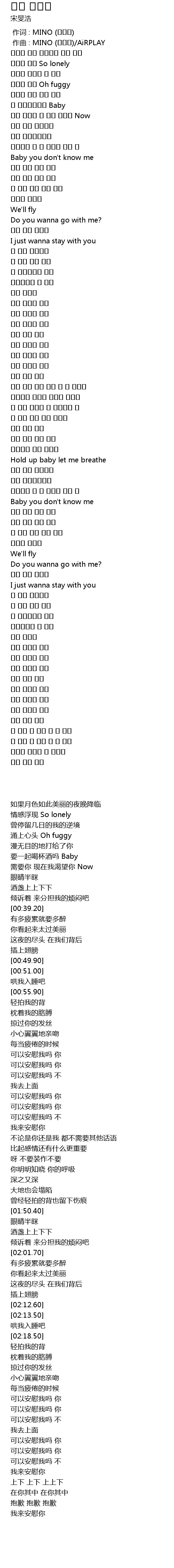 | [00:01.000] | 作曲 : MINO (송민호)/AiRPLAY |