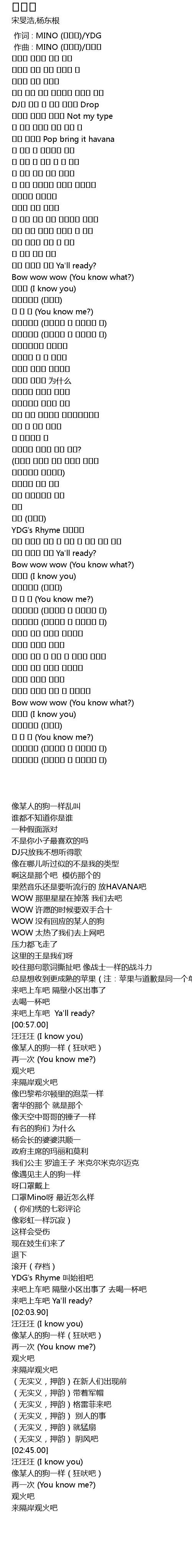 | [00:00.000] | 作词 : MINO (송민호)/YDG |
