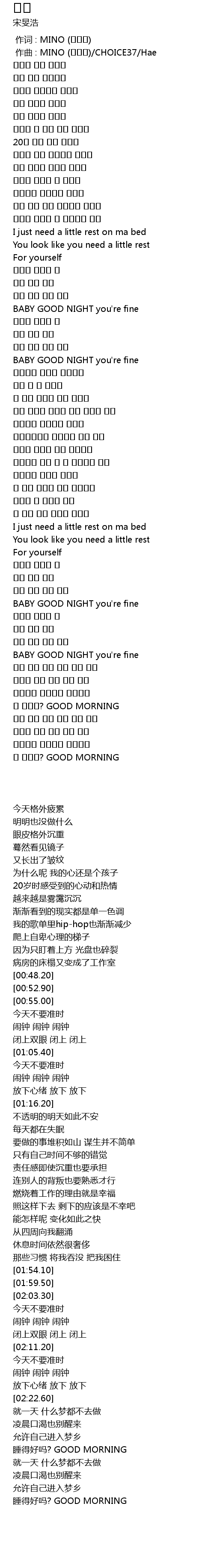 | [03:06.50] | 푹 쉬었니? GOOD MORNING |