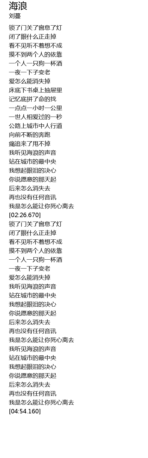 | [03:36.380] | wo ting jian hai lang de sheng yin |