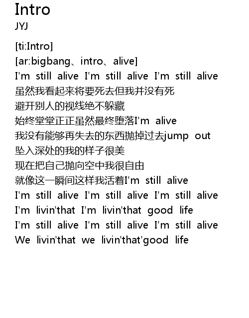 | [00:35.804] | I' m still alive I' m still alive I' m still alive |