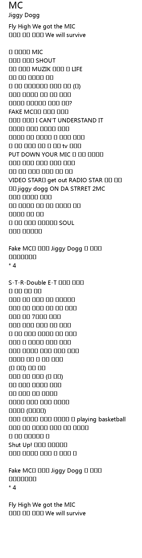 Fake MC는 머리로 Jiggy Dogg 은 거리로 |