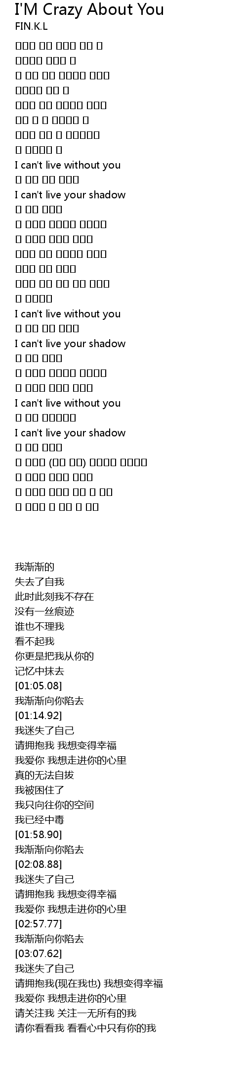 | [01:14.92] | I can' t live your shadow |