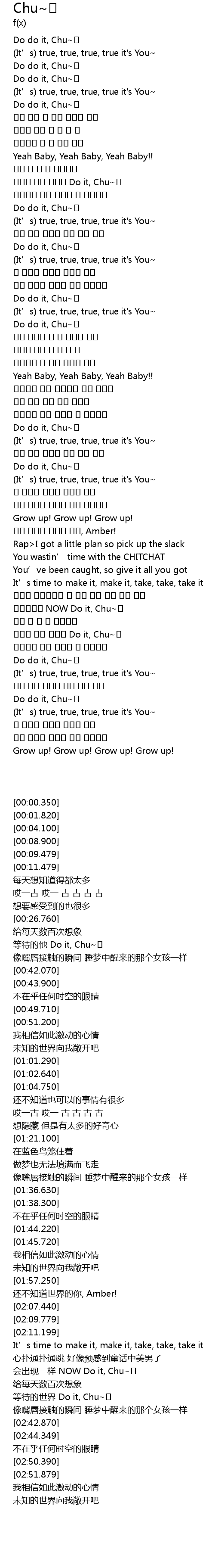 | [02:35.059] | 기다려 왔던 세상에 Do it, Chu~♡ |