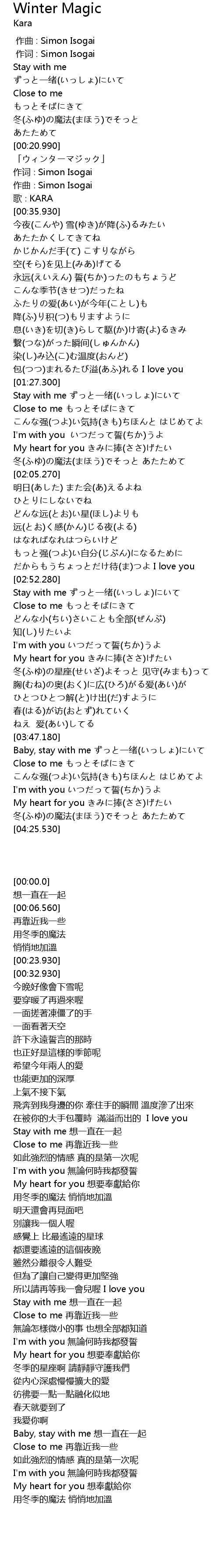 | [03:48.810] | Baby, stay with me ずっと一绪(いっしょ)にいて |