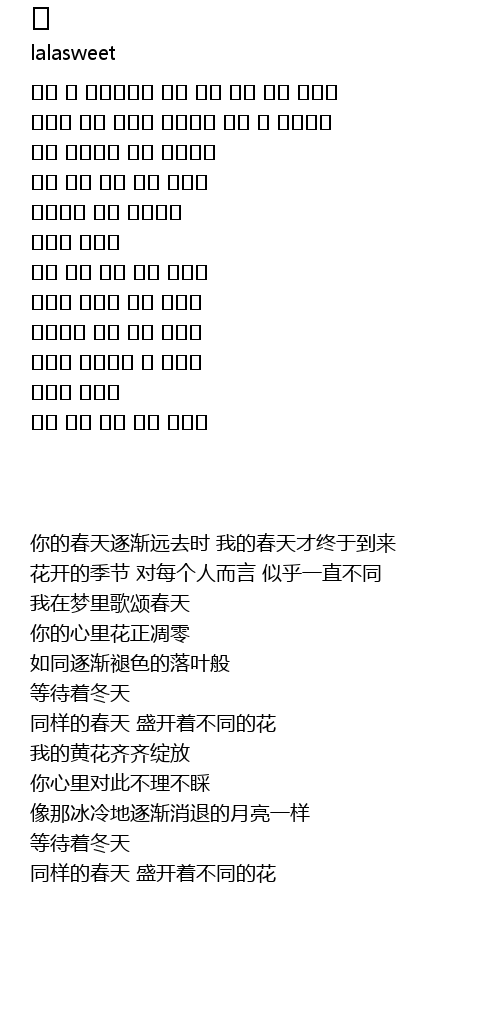 | [00:06.640] | 너의 봄 달려가는데 나의 봄은 겨우 여기 서있네 |
