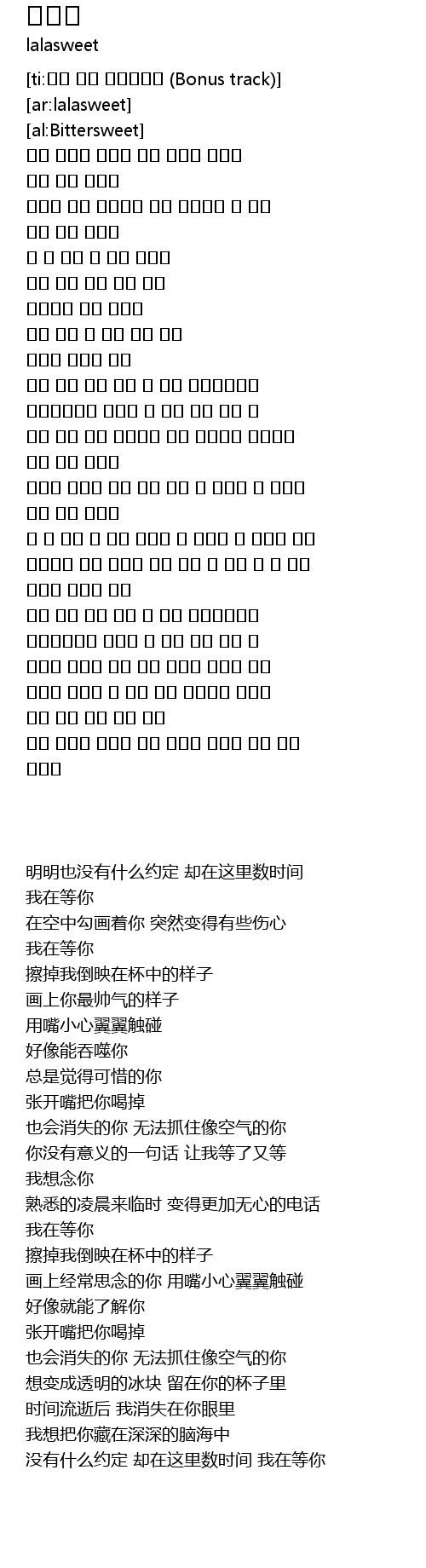 [03:26.50] 아무 약속도 없는데 괜히 시간을 세고서 나는 너를 기다려