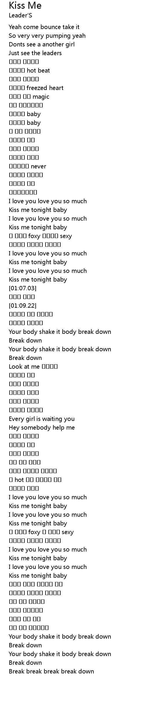 | [01:01.69] | Kiss me tonight baby |
