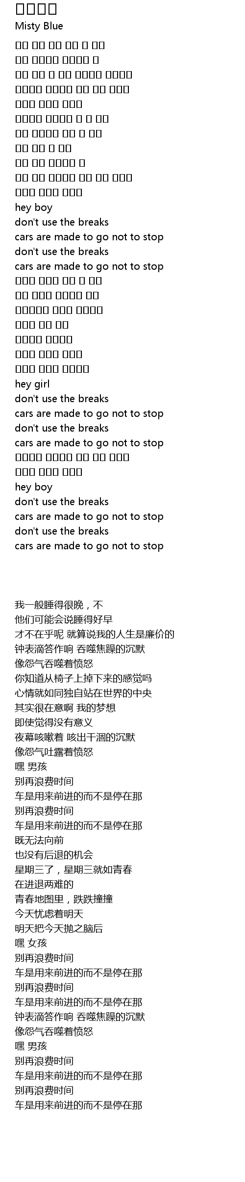 | [03:01.03] | don' t use the breaks |