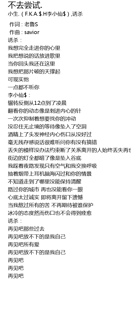 | [00:00.000] | 作词 : 老鲁S |