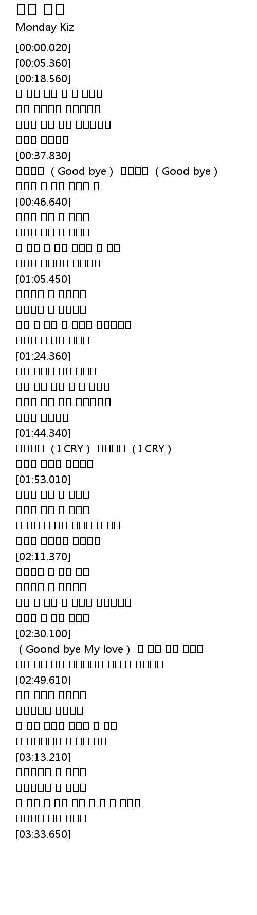 | [00:38.090] | 보내줄게 (Good bye) 놓아줄게 (Good bye) |