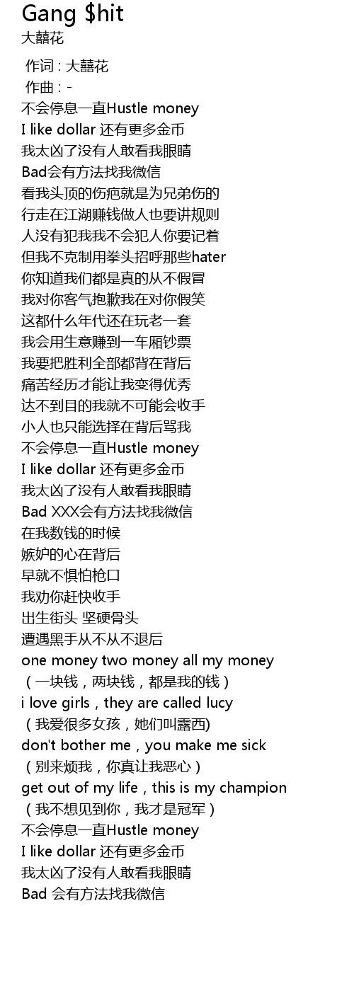 | [00:14.189] | bu hui ting xi yi zhi Hustle money |