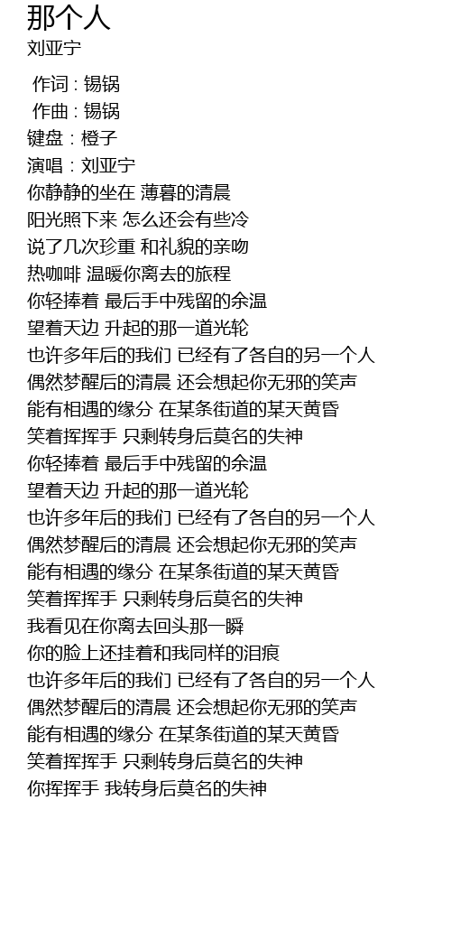 | [01:32.432] | 笑着挥挥手 只剩转身后莫名的失神 |