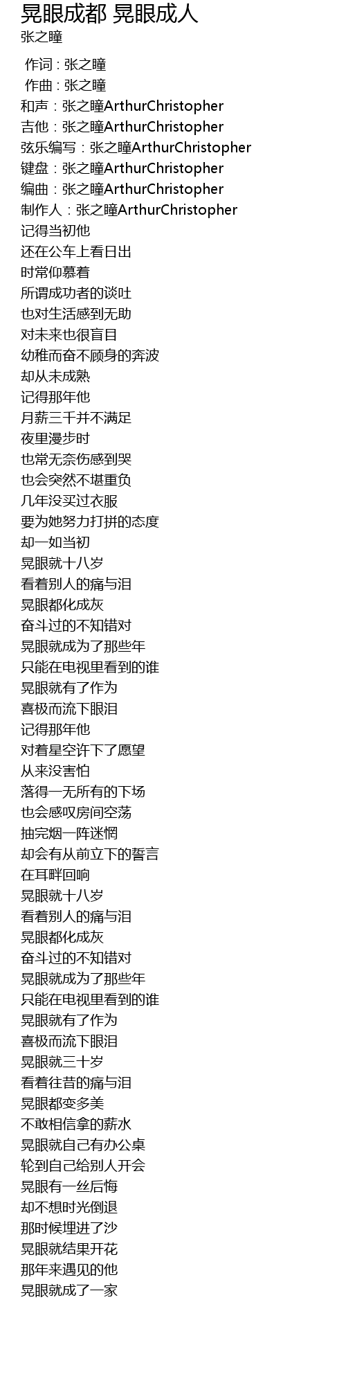 | [00:11.031] | 编曲:张之瞳ArthurChristopher |