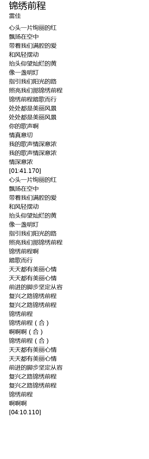 | [00:52.110] | 照亮我们那锦绣前程 |