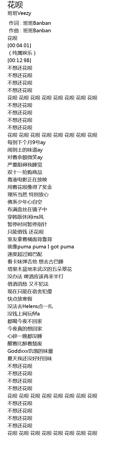 | [01:46.59] | 花呗 花呗 花呗 花呗 花呗 花呗 花呗 花呗 |