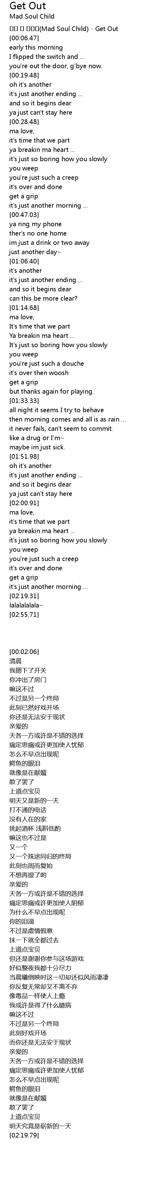 | [00:02.06] | 매드 솔 차일드(Mad Soul Child) - Get Out |