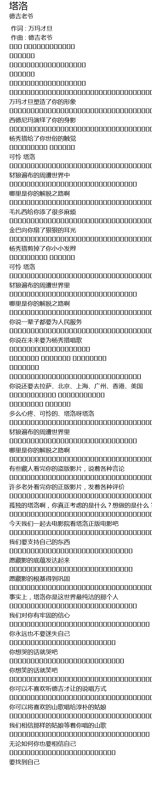 | [01:04.467] | 多么心疼、可怜的、塔洛呀塔洛 |