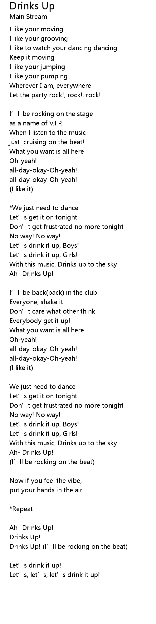 | Drinks Up! I' ll be rocking on the beat | |