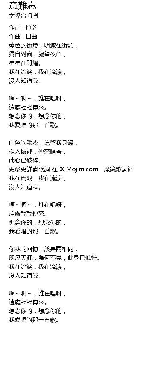 | 更多更詳盡歌詞 在 ※ Mojim.com 魔鏡歌詞網 | |