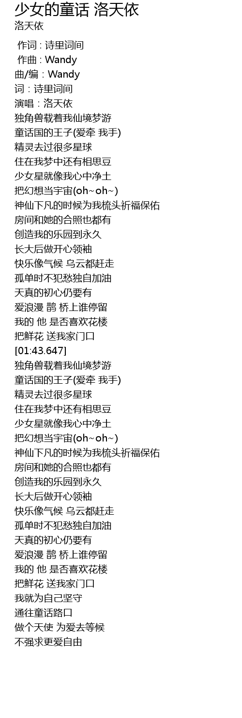 | [02:01.733] | 独角兽载着我仙境梦游 |