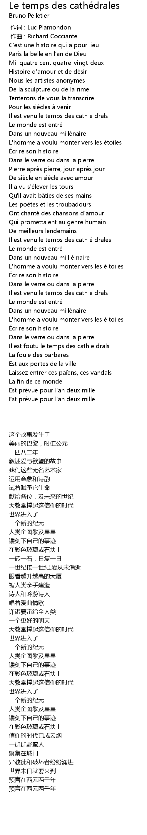| [01:58.808] | Il est venu le temps des cath e drals |