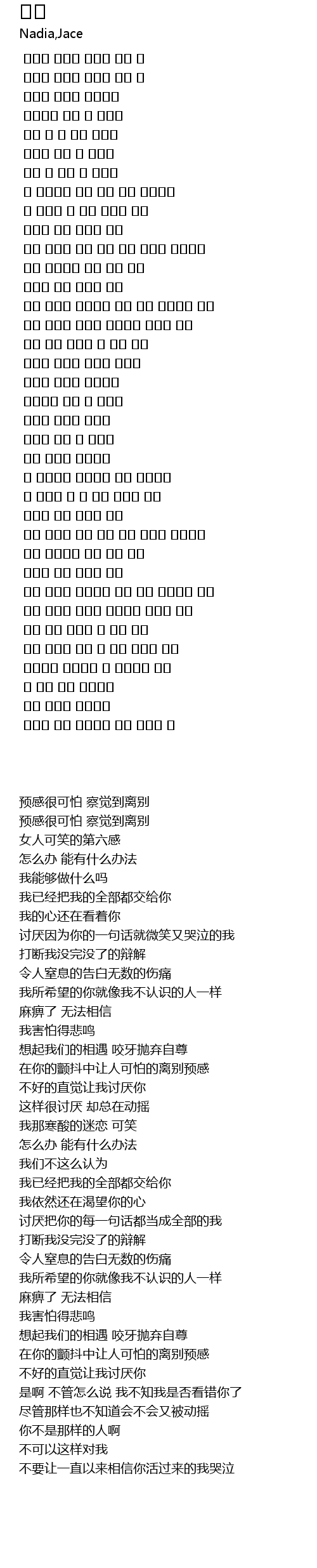 | [00:01.507] | 예감은 무섭게 이별을 눈치 채 |