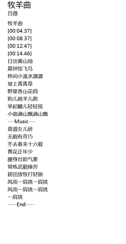 | [00:02.41] | 牧羊曲 |