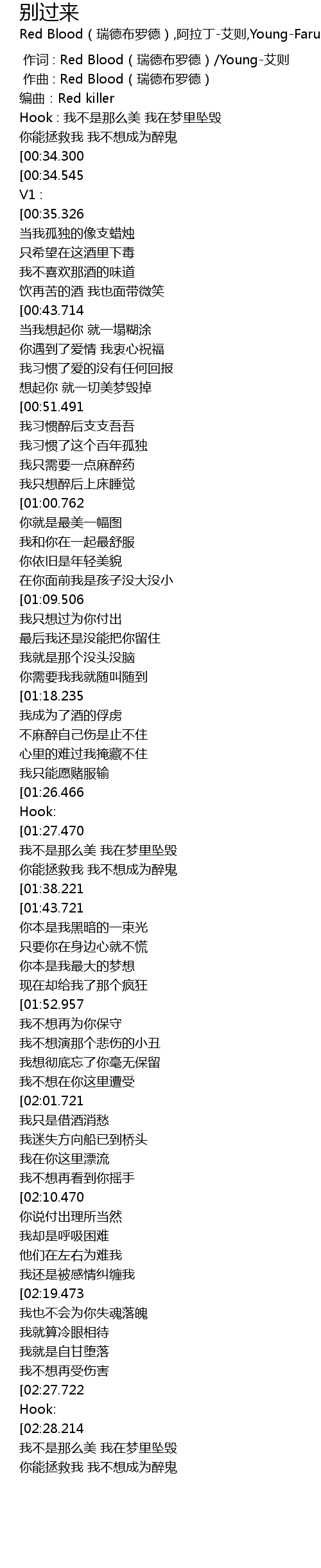 | [00:01.000] | zuo qu : Red Blood rui de bu luo de |