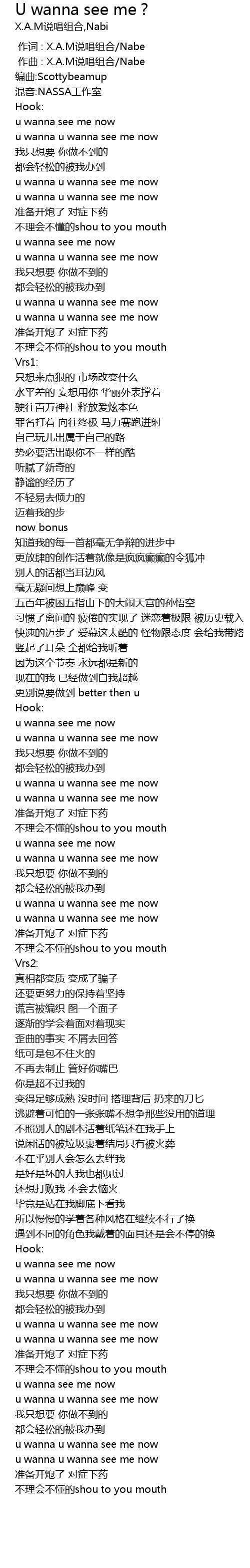 | [00:01.000] | 作曲 : X.A.M说唱组合/Nabe |